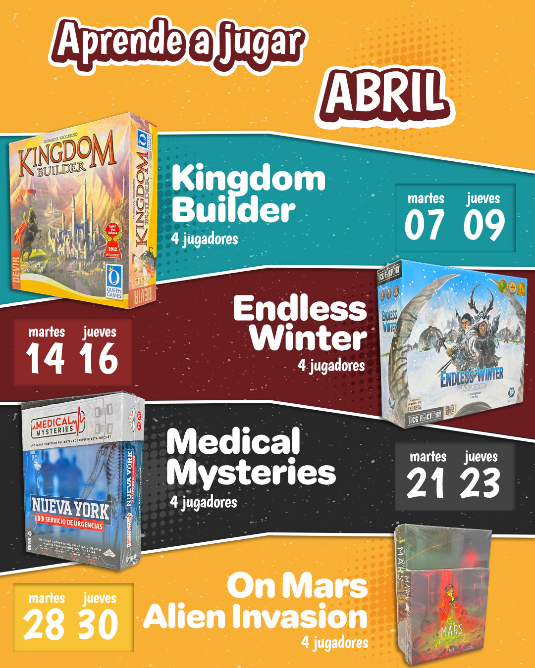* aplica solo en los juegos del mes de abril que son: Marrakech, Catfé, Cakes!, Captain Flip y Hive